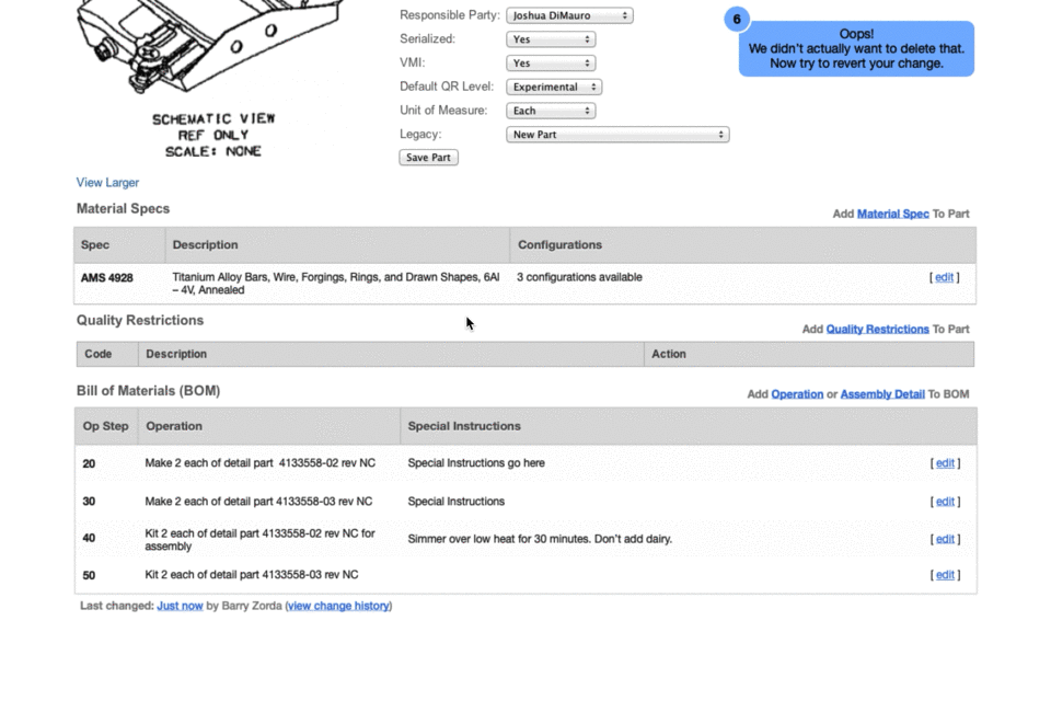 I worked with the developer to edit and import the manufacturing operations for hundreds of part numbers.